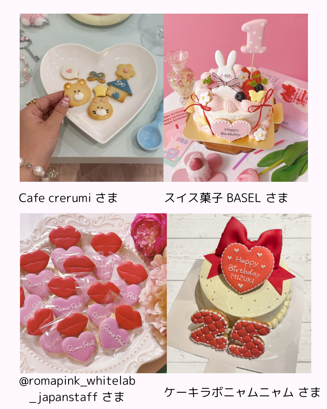 スイス菓子BASELさまにて、当店のアイシングクッキーのお取り扱いが開始されました。 コラボ商品としてアイシングクッキーが飾られたデコレーションケーキの予約販売が開始されました。 |